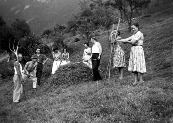 Les valamonts, petites meules de foin, qui évitent au fourrage d’être abîmé sur le champ, avant la rentrée en grange. Collection : Gérard Buttoudin (P. Dupraz, Traditions et évolution de Passy, p. 32) L’herbe, les foins et le regain à Passy, © 2017 Culture, Histoire et Patrimoine de Passy
